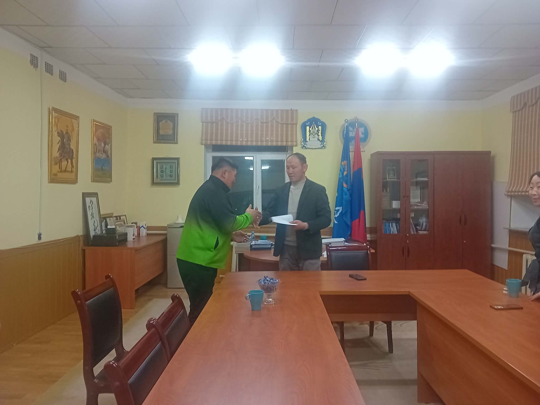 Төсвийн тухай хуулийн 8.5.3 дахь заалтын дагуу тухайн шатны Засаг дарга сум дүүргийн жилийн төсвийг тухайн жилийн 12 дугаар сарын 10-ны дотор ИТХ, болон зөвлөлд өргөн барина гэж заасны дагуу 12 дугаар сарын 10-нд сумын Засаг дарга Х.Энхтайван, сумын төсвийн ерөнхий нягтлан бодогч Д.Нэргүй нар сумын ИТХ-ын дарга З.Уртнасанд төсвийн төслийг өргөн барилаа.