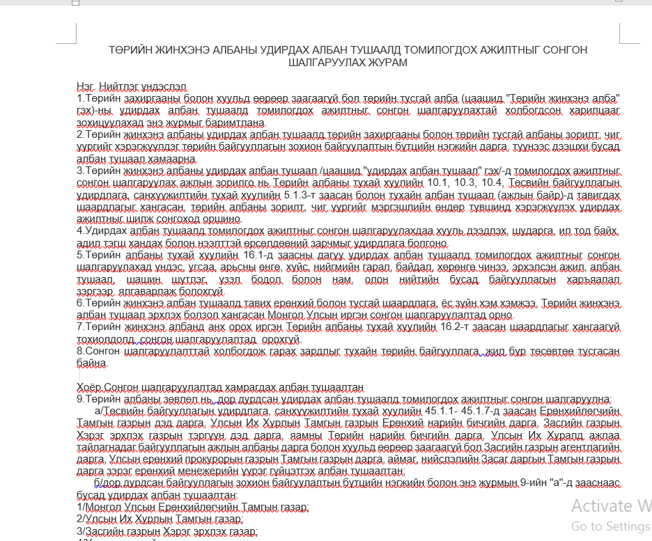 Албан хаагч, ажилтны сонгон шалгаруулах журам