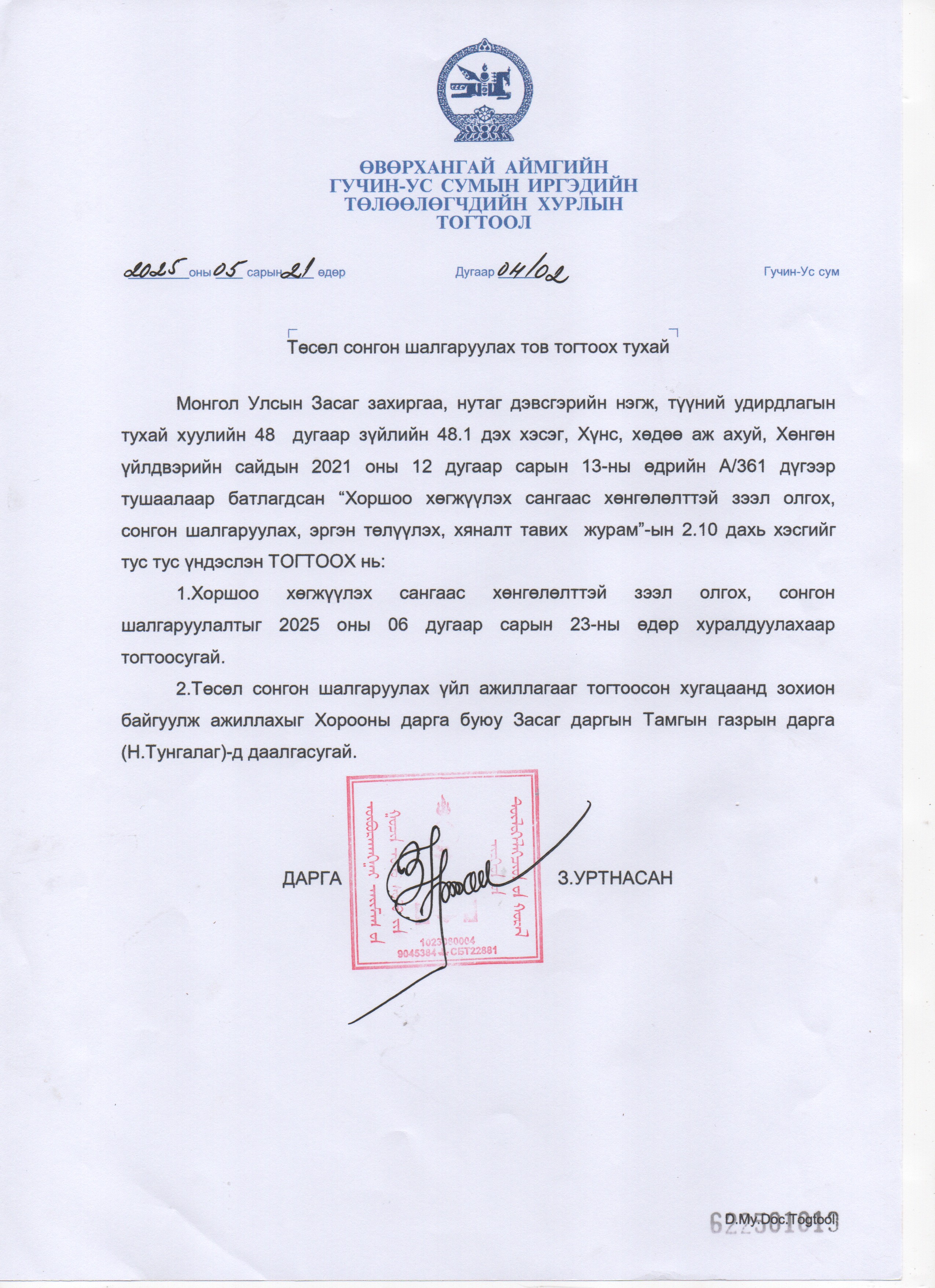 Төсөл сонгон шалгаруулах тов тогтоох тухай