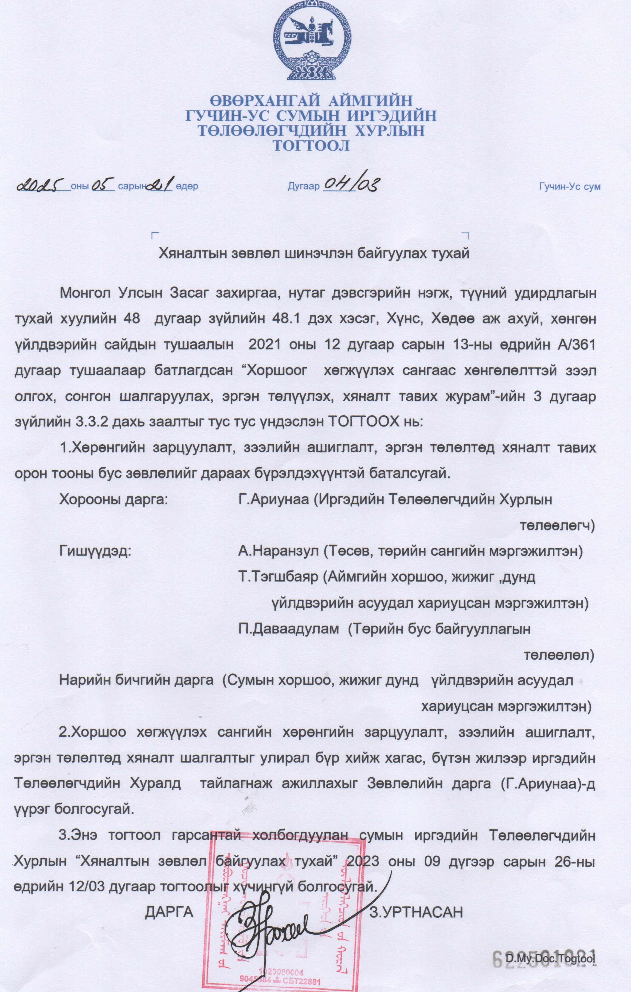 2021 оноос хойших тогтоолууд