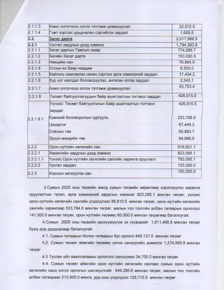 Хүсэлт гаргах нь: Суманд ажилладаг босоо удирдлагатай албан тушаалтнуудад орон нутгийн нэмэгдэл олгох тухай ирсэн албан бичиг